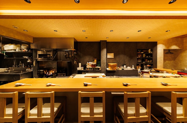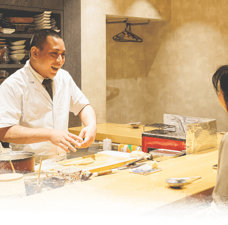 臨場感のあるカウンターは全10席。目の前で握る所作や香りを五感で味わえる特等席です。お一人様はもちろん、肩肘張らないデートにも最適。仕事終わりの遅い時間でも、深夜4時まで本格鮨をゆっくり愉しめます。
