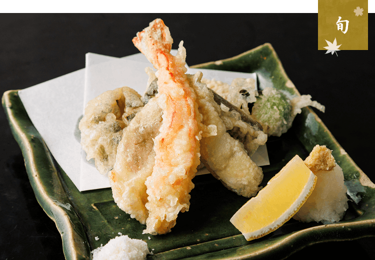 鮨に加えて、季節の一品料理も「鮨のかぜ」の魅力です。焼き物や揚げ物、お造りなど、仕入れに合わせて内容が変わる旬の料理をご用意。初めての方には『刺身の盛り合わせ』や『天ぷらの盛り合わせ』がおすすめ。鮨と一品料理を組み合わせて、お好みのスタイルでお愉しみください。