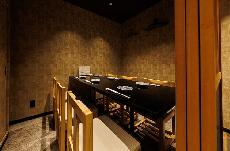 4名様用・6名様用の半個室を完備。周りを気にせず会話と鮨に集中でき、少人数の会食や記念日にもおすすめです。和モダンの落ち着いた空間で、時間を忘れてゆったりと。18時から翌朝4時まで、接待や会食、ご家族の団らんにもお気軽にどうぞ。