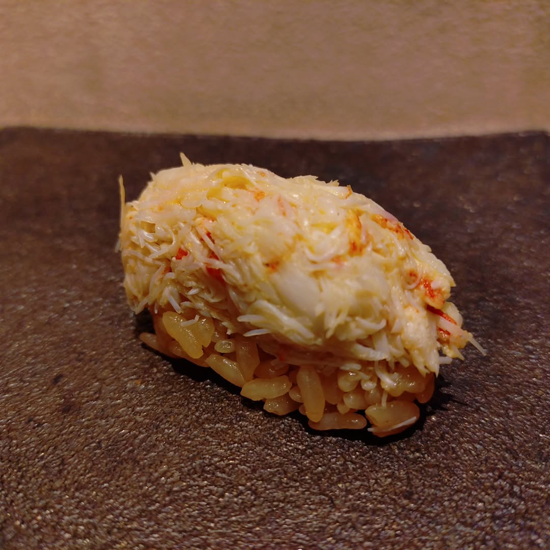毛ガニの身をほぐして、毛ガニの味噌とあわせてお鮨でご用意しております。ぜひご賞味ください。