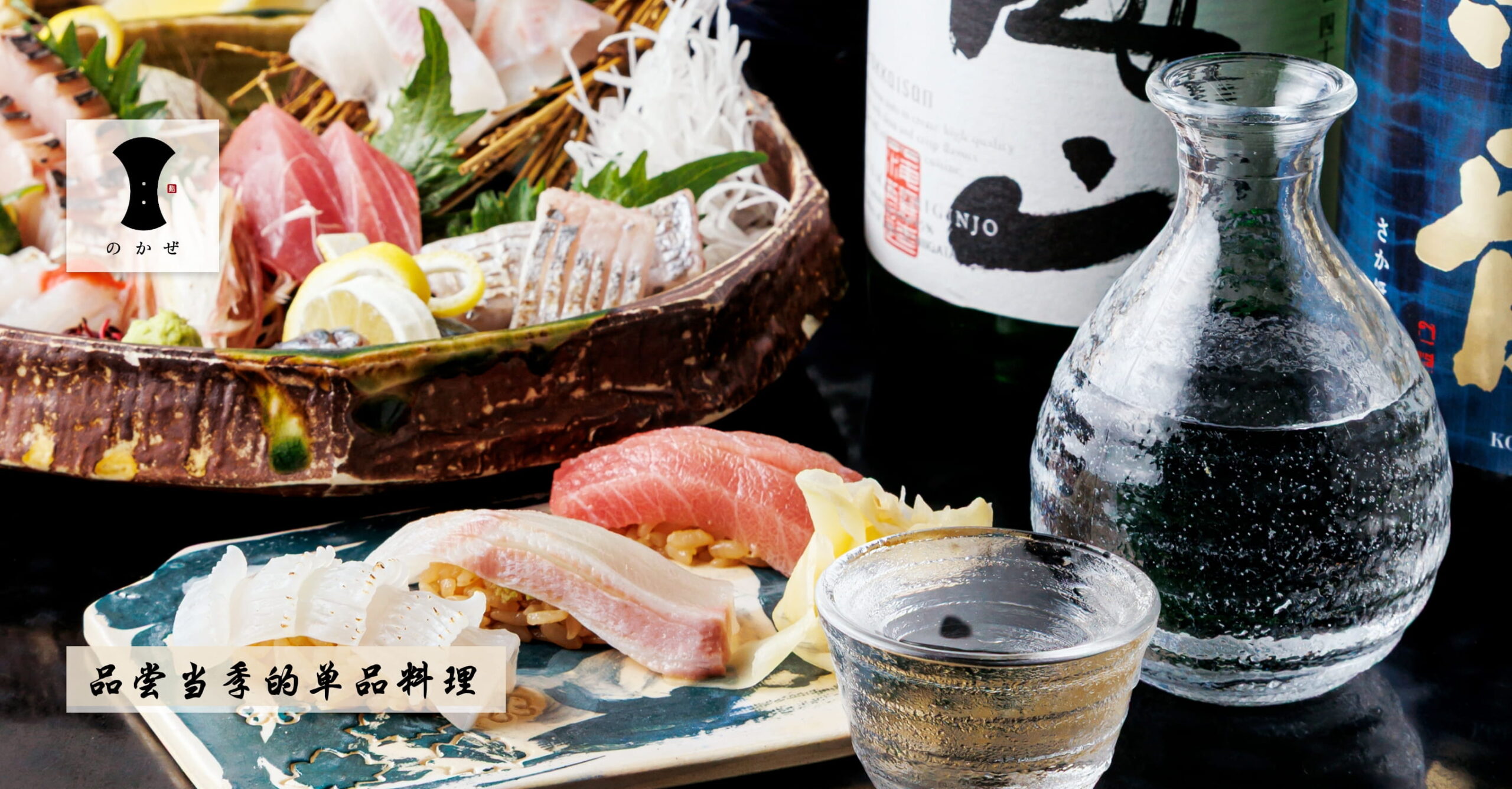 除了寿司之外,当季单品料理也是「鮨NOKAZE」的魅力所在。烤物、炸物或生鱼片等,会依照当天采买的食材调整内容。初次来访的客人,推荐「生鱼片拼盘」或「天妇罗拼盘」。可将寿司与单品料理搭配,依照喜好享受各种风格的餐点。