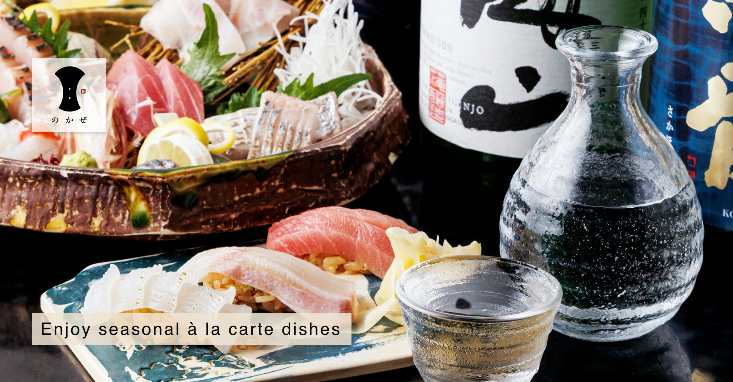 In addition to sushi, seasonal à la carte dishes are a highlight at “Sushi NOKAZE.” Grilled items, fried dishes, and sashimi are prepared according to the day’s fresh ingredients. For first-time visitors, we recommend the “Sashimi Platter” or “Tempura Platter.” Combine sushi with à la carte dishes to enjoy a meal in your preferred style.
